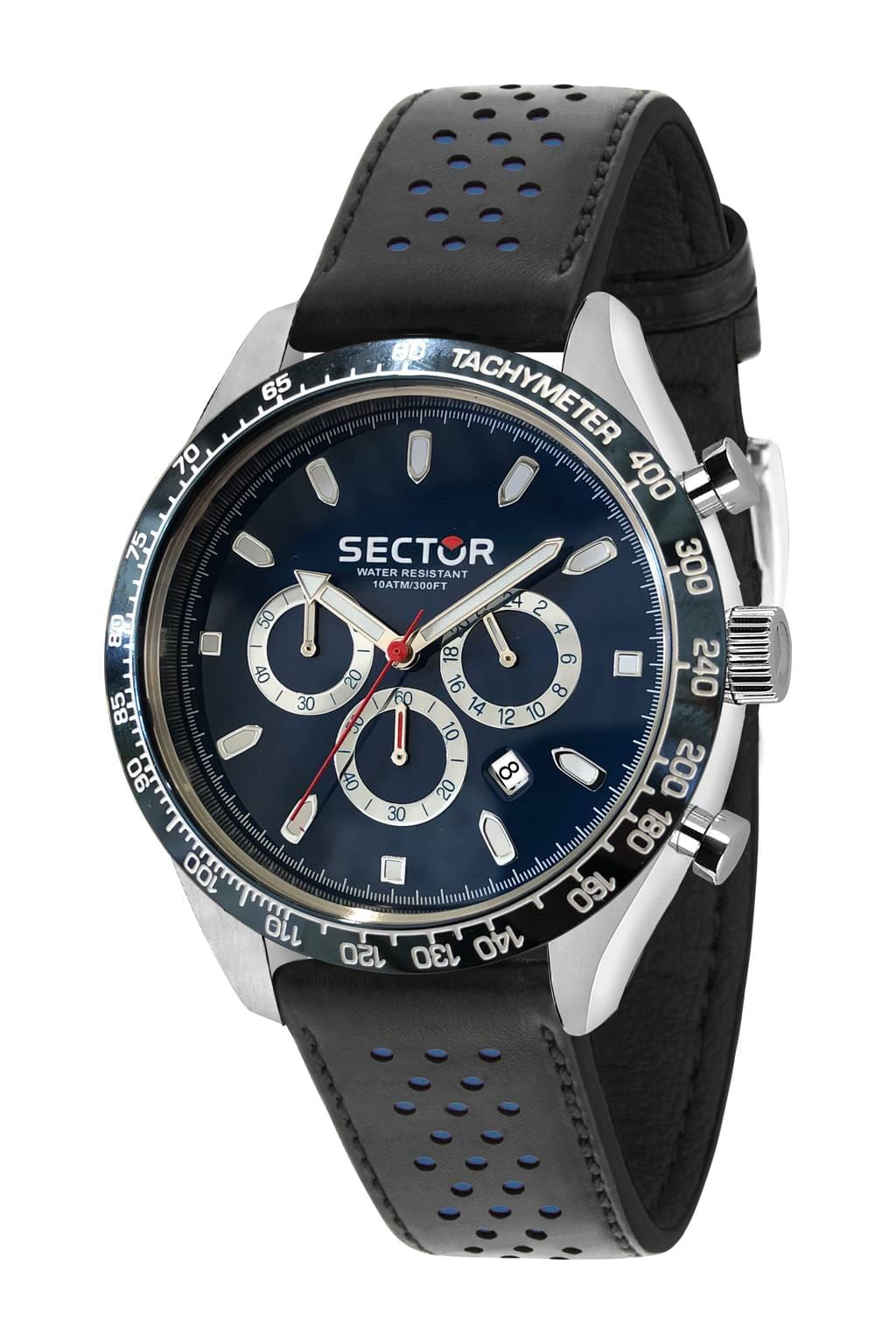 Relógio Sector 245, R3271786019, de homem, cronógrafo, com caixa em aço e bracelete em pele preta.