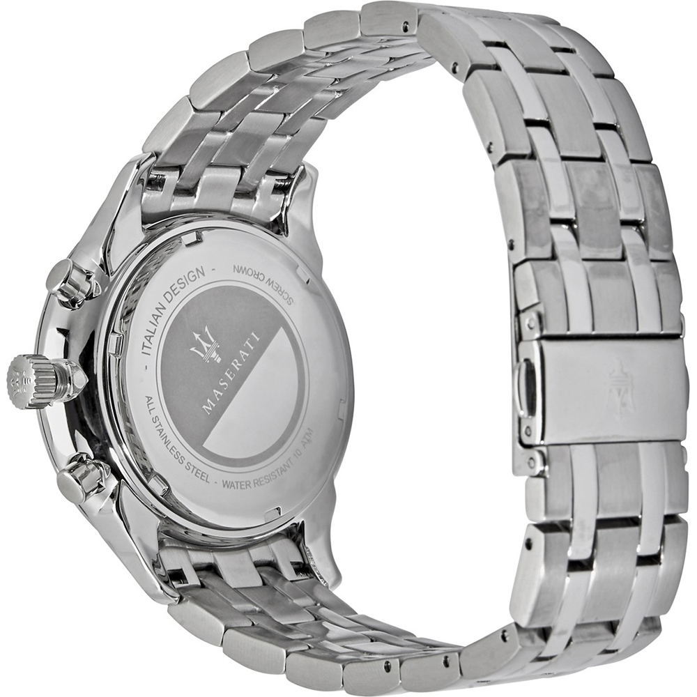 Relógio Maserati Cavalheiro com caixa em aço inoxidável e equipado com uma bracelete de metal.