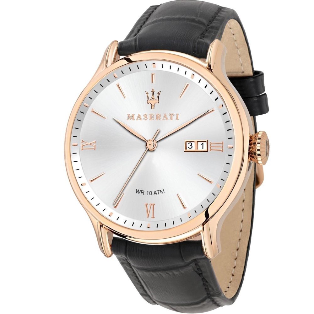 Relógio Maserati Epoca com caixa em aço inoxidável equipado com uma bracelete de pele.