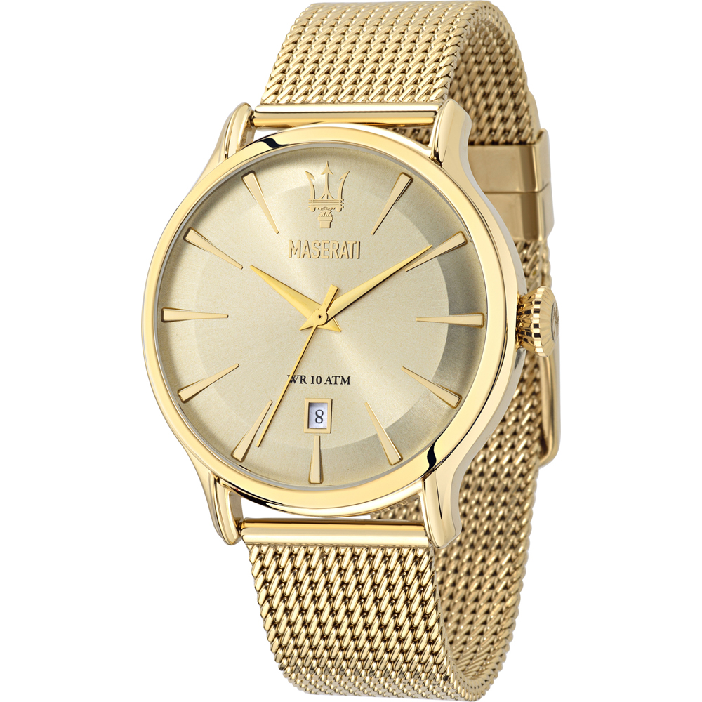 Relógio Maserati Epoca com caixa em aço inoxidável equipado com uma bracelete de metal mesh.