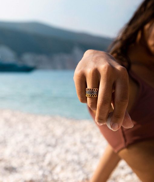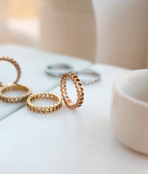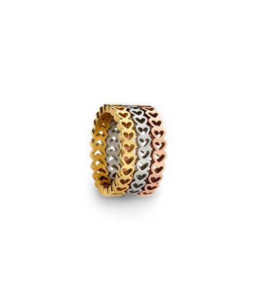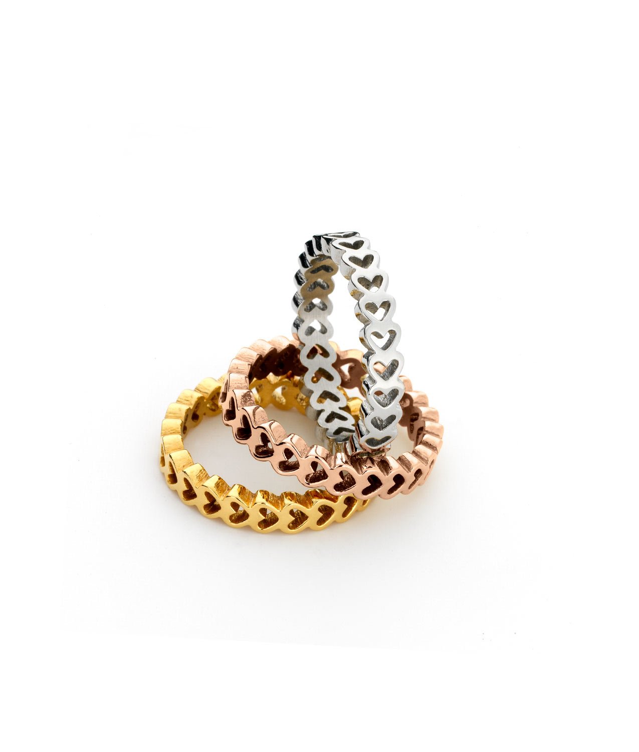 Pack 3 anéis Anjewels em aço 316L hipoalergénico tricolor. Em que o rosegold representa a paixão, o dourado a felicidade e o prateado a amizade.