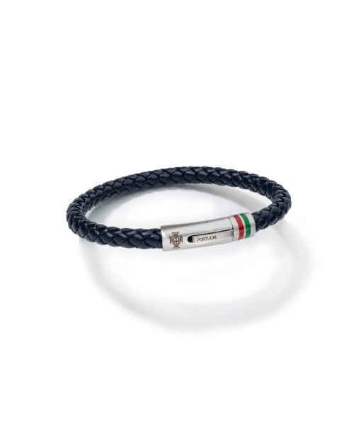 Pulseira masculina da Coleção Rider On The Storm em parceria com a Federação Portuguesa de Futebol em couro e fecho em aço 316L Hipoalergénico.
