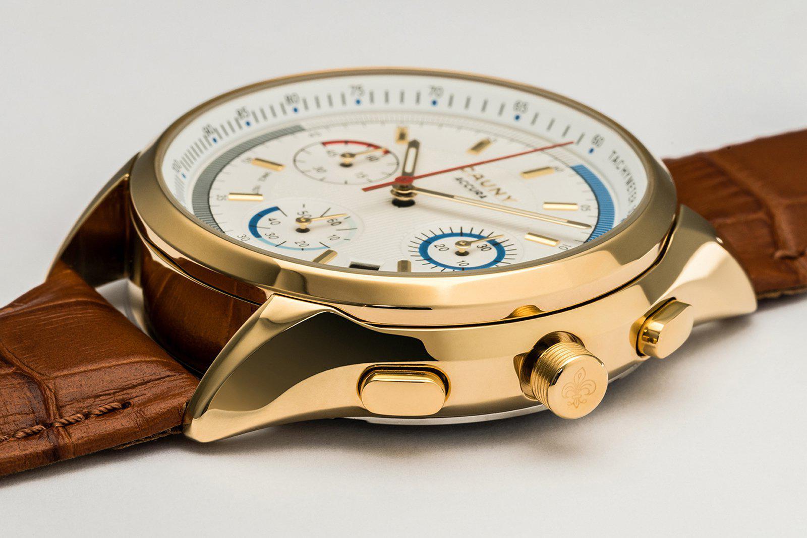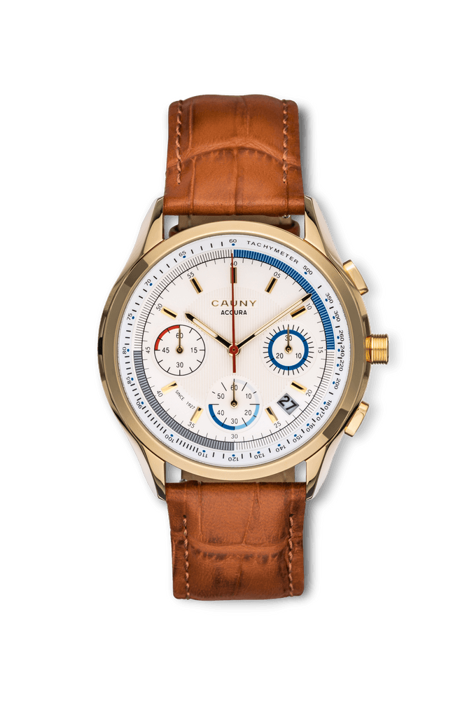 Relógio Cauny de homem em aço inoxidável e bracelete de pele.