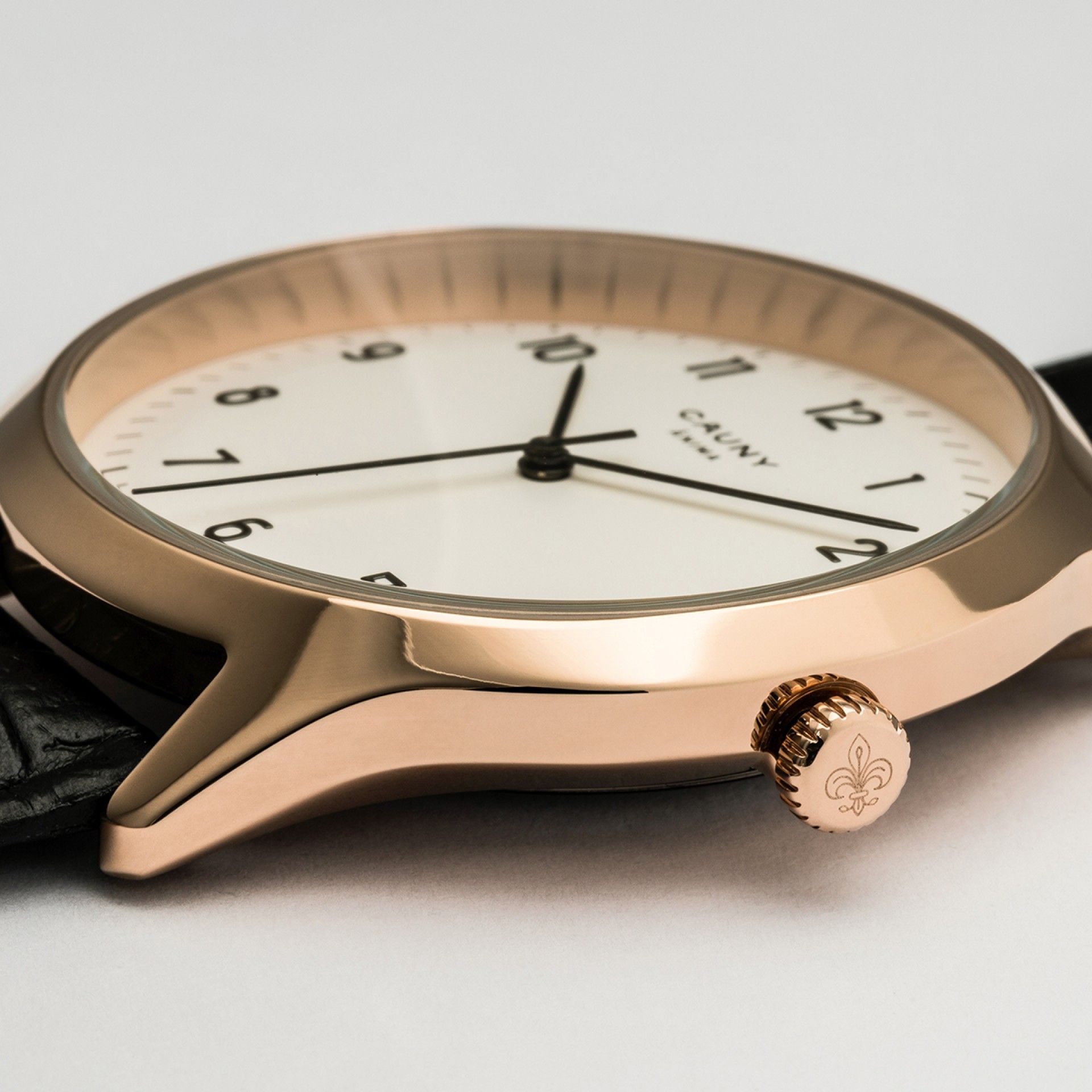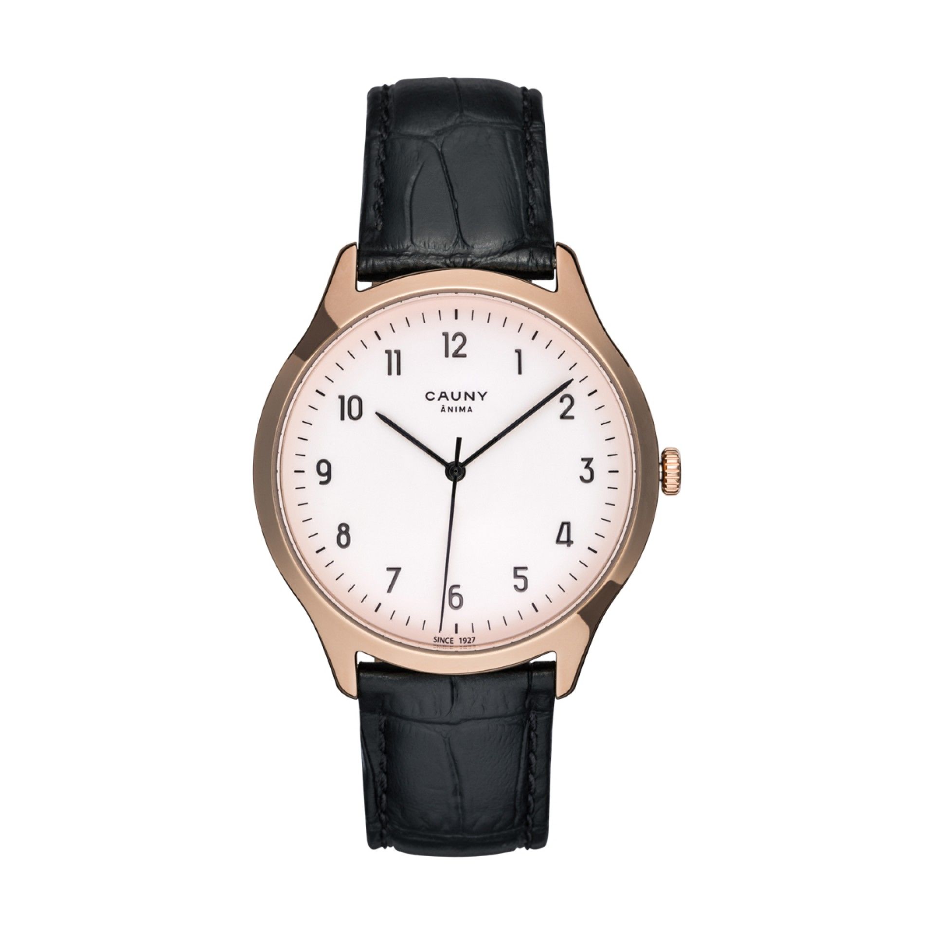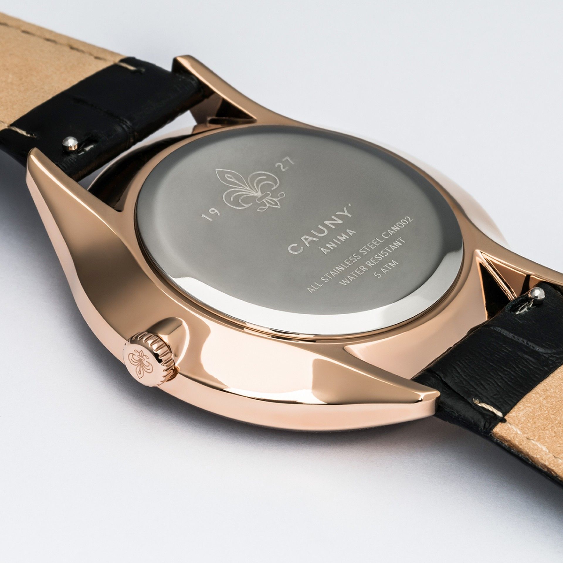 Relógio Cauny Ânima Rose Gold em aço inoxidável com bracelete intercambiável em pele.