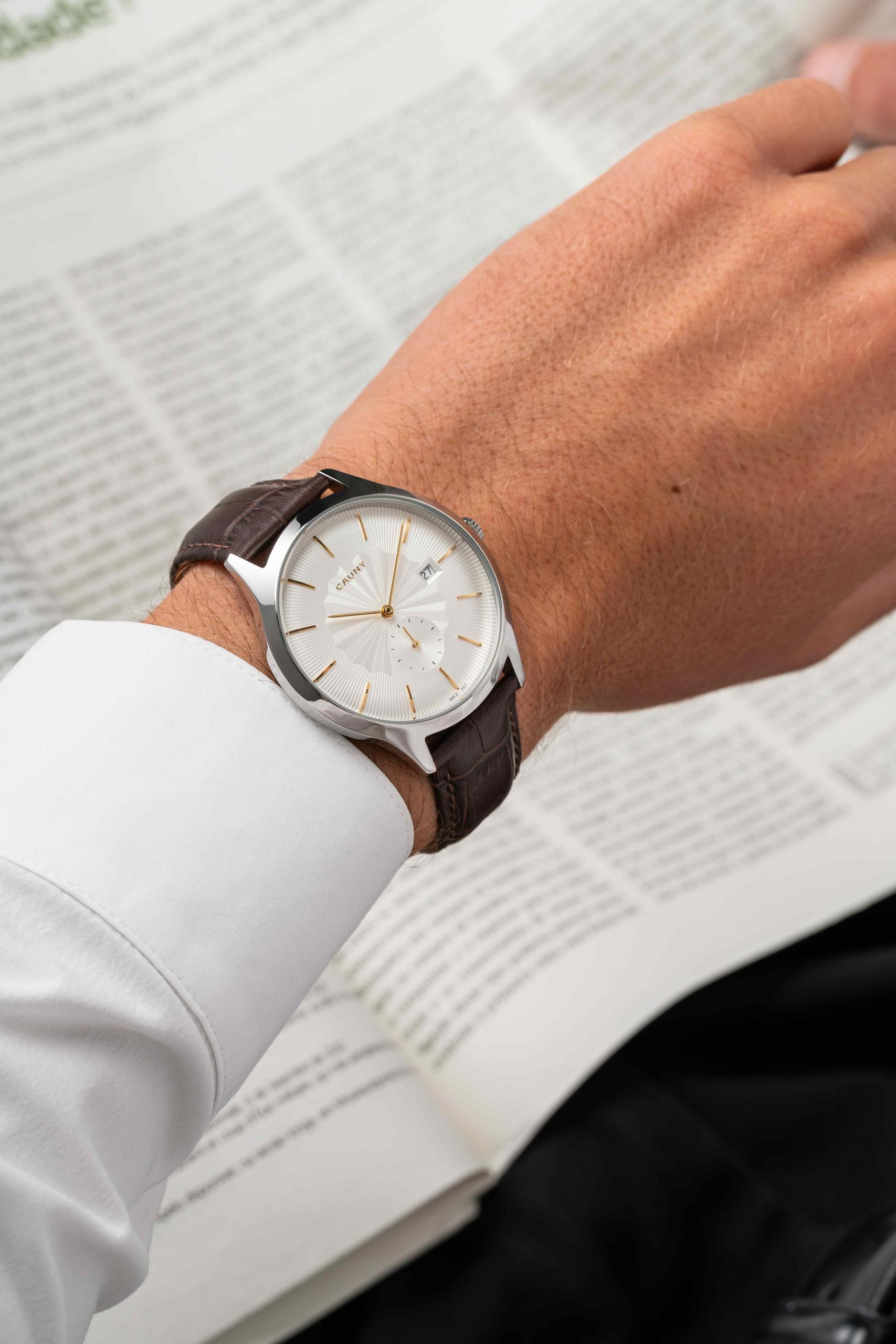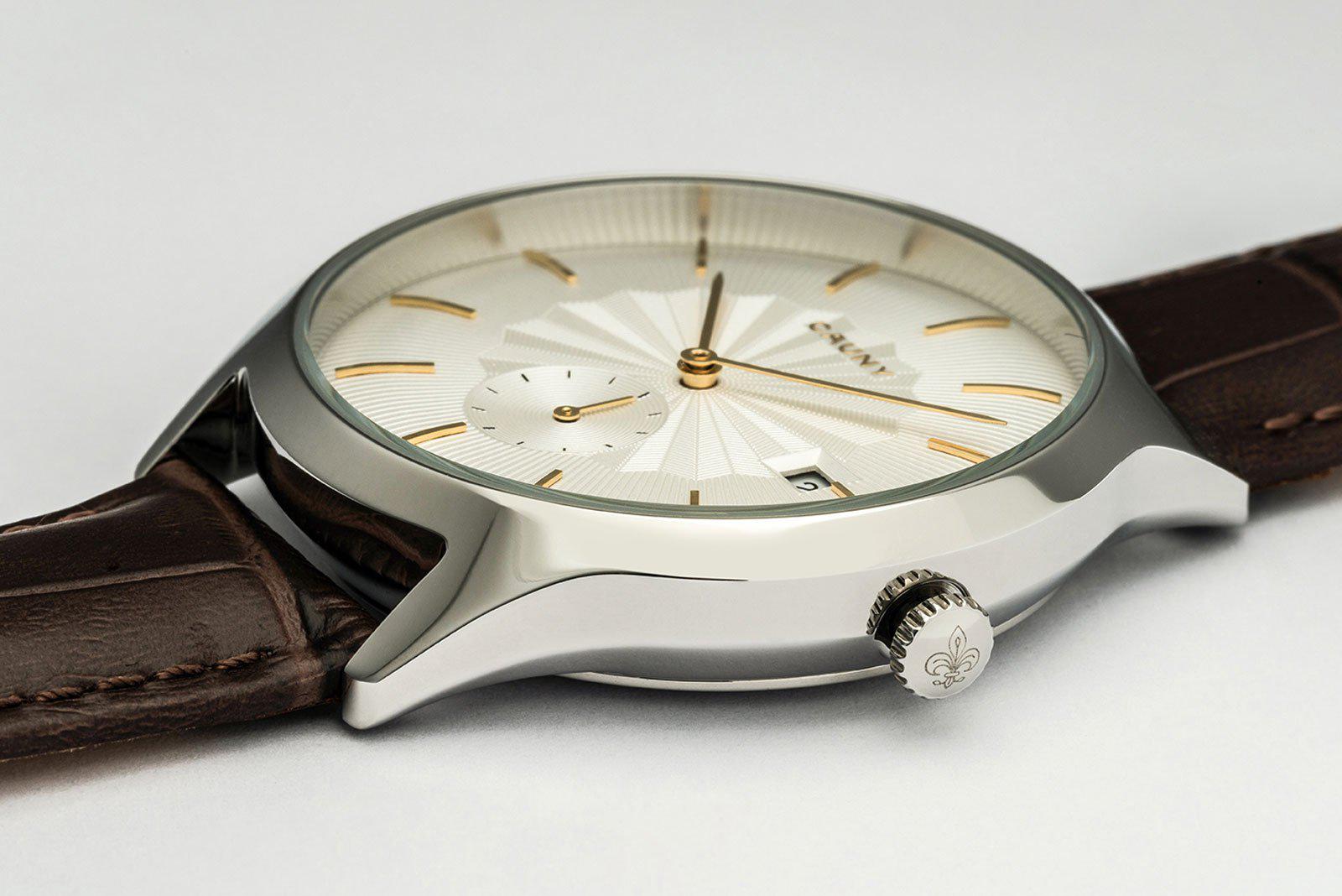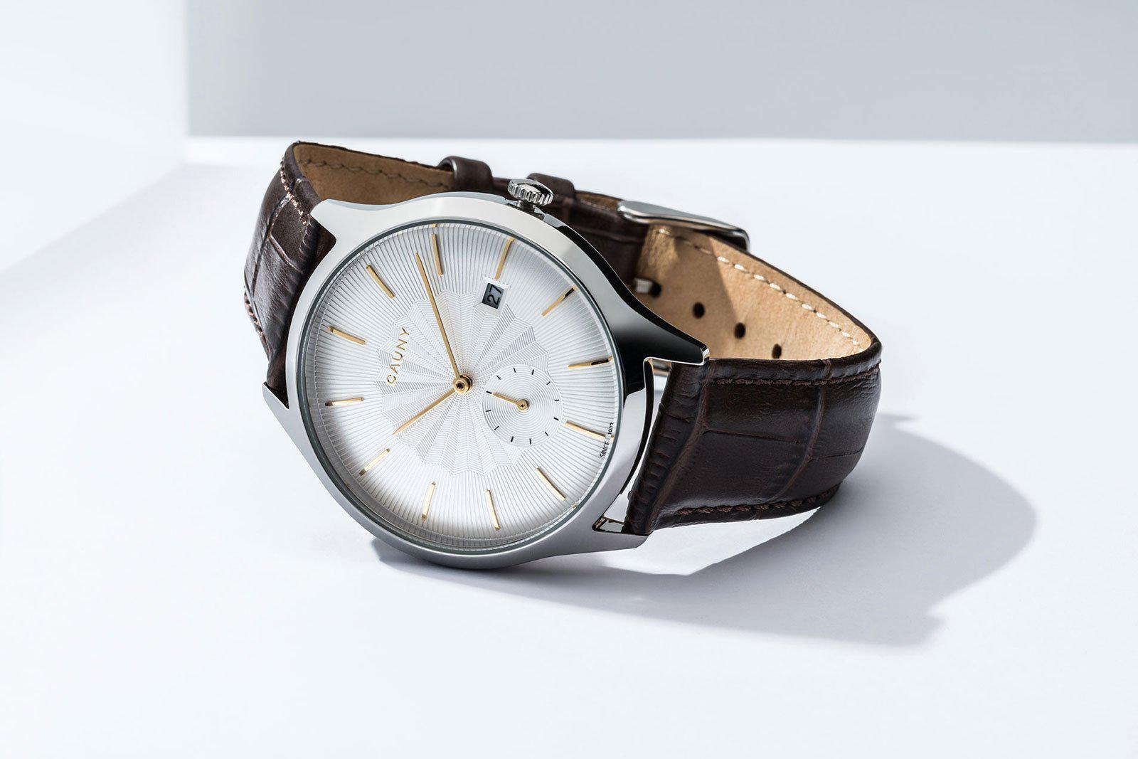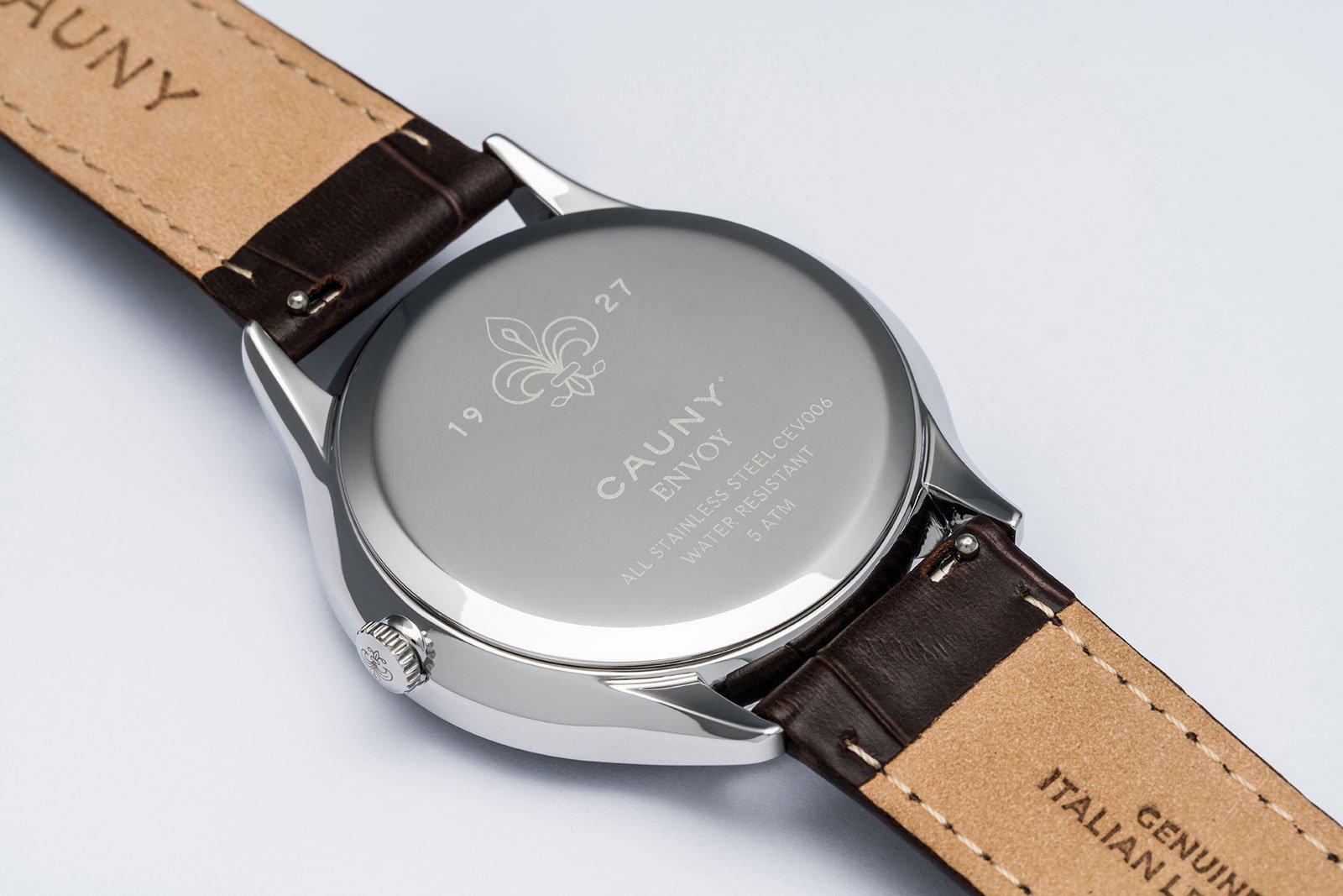 Relógio Cauny Envoy Patterns Bicolour em aço inoxidável com bracelete intercambiável em pele.