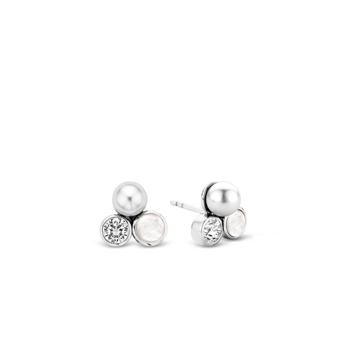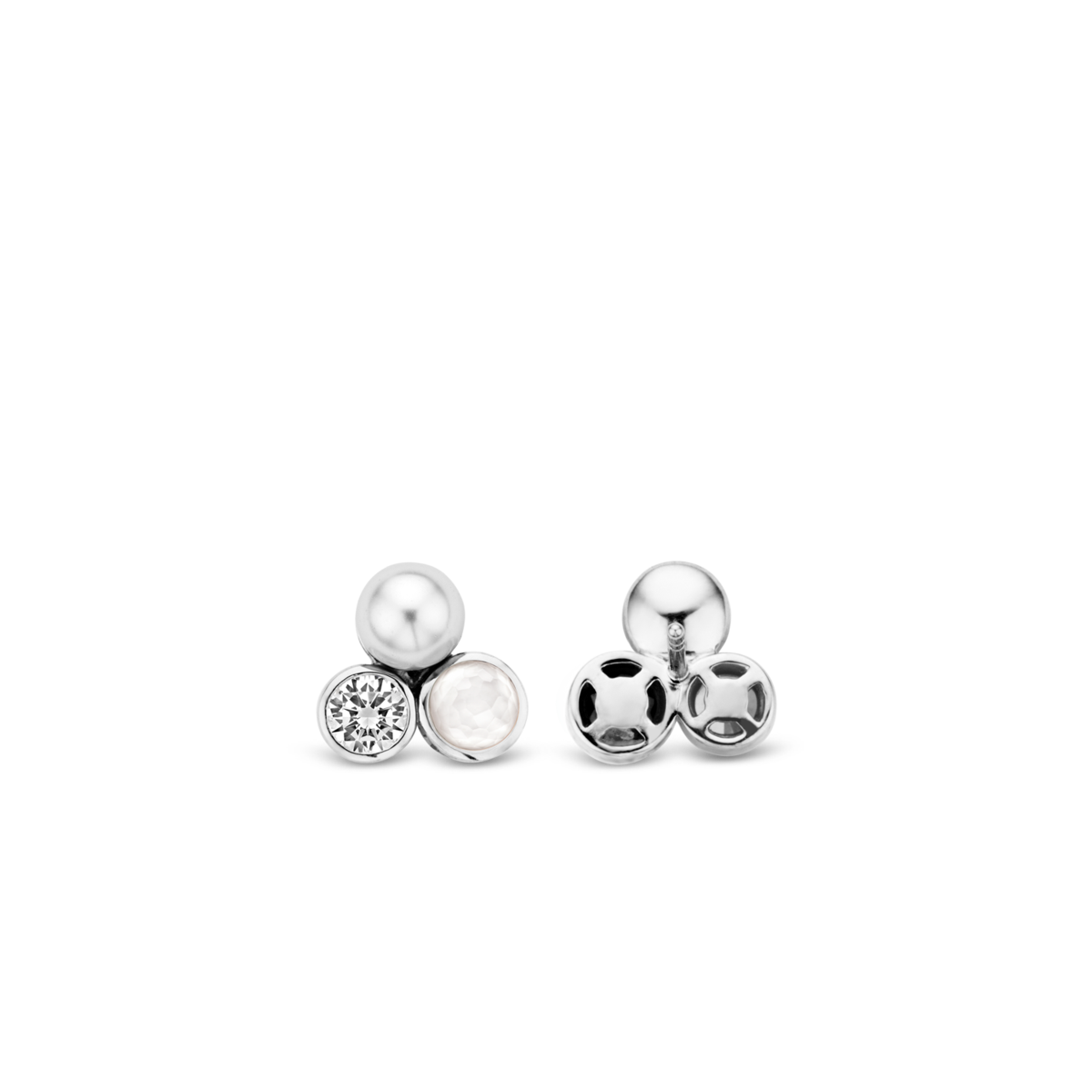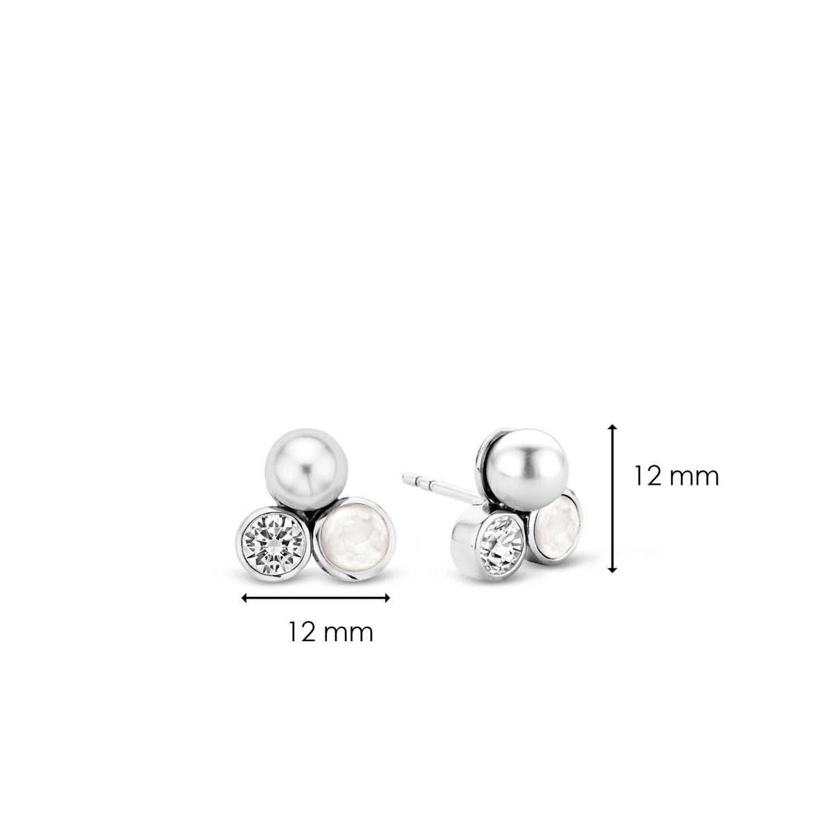 Estes brincos de design encantador são formados por uma pérola branca, uma pedra branca facetada e o toque glamoroso da zircónia cúbica branca. São peças de classe, chiques e festivas ao mesmo tempo.