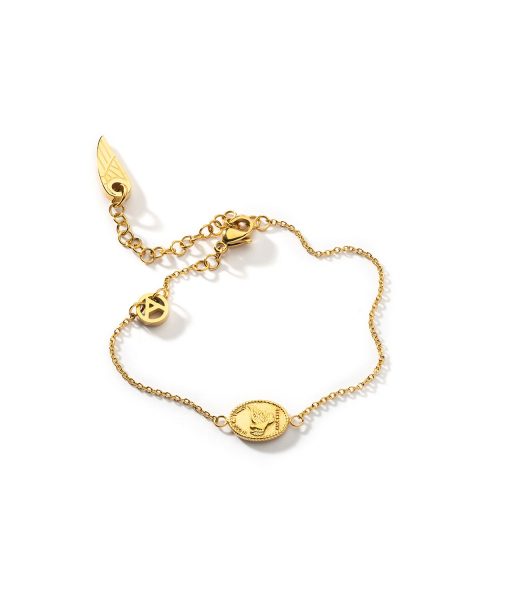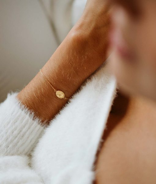 Coleção Angie: Pulseira dourada com pequena medalha.