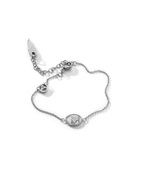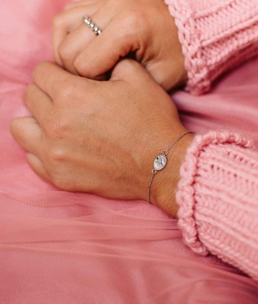 Coleção Angie Costa: Pulseira prateada com pequena medalha.