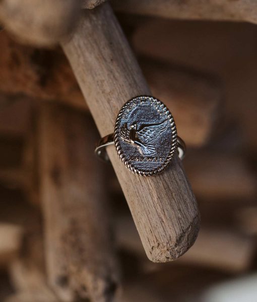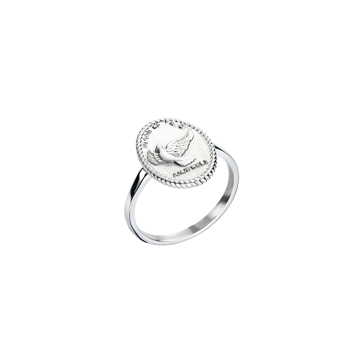 Coleção Angie Costa: Anel moeda oval em aço inoxidável.