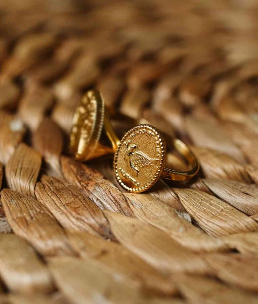 Coleção Angie Costa: Anel moeda oval em aço inoxidável.