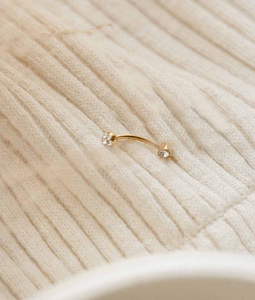 Piercing Rook dourado com cristais nas extremidades, da Coleção State of Mind. Inspirado na autenticidade das mulheres e no seu valor. Ideal para as mais ousadas e irreverentes. O tom dourado em contraste com os cristais torna a peça distinta e especial.
