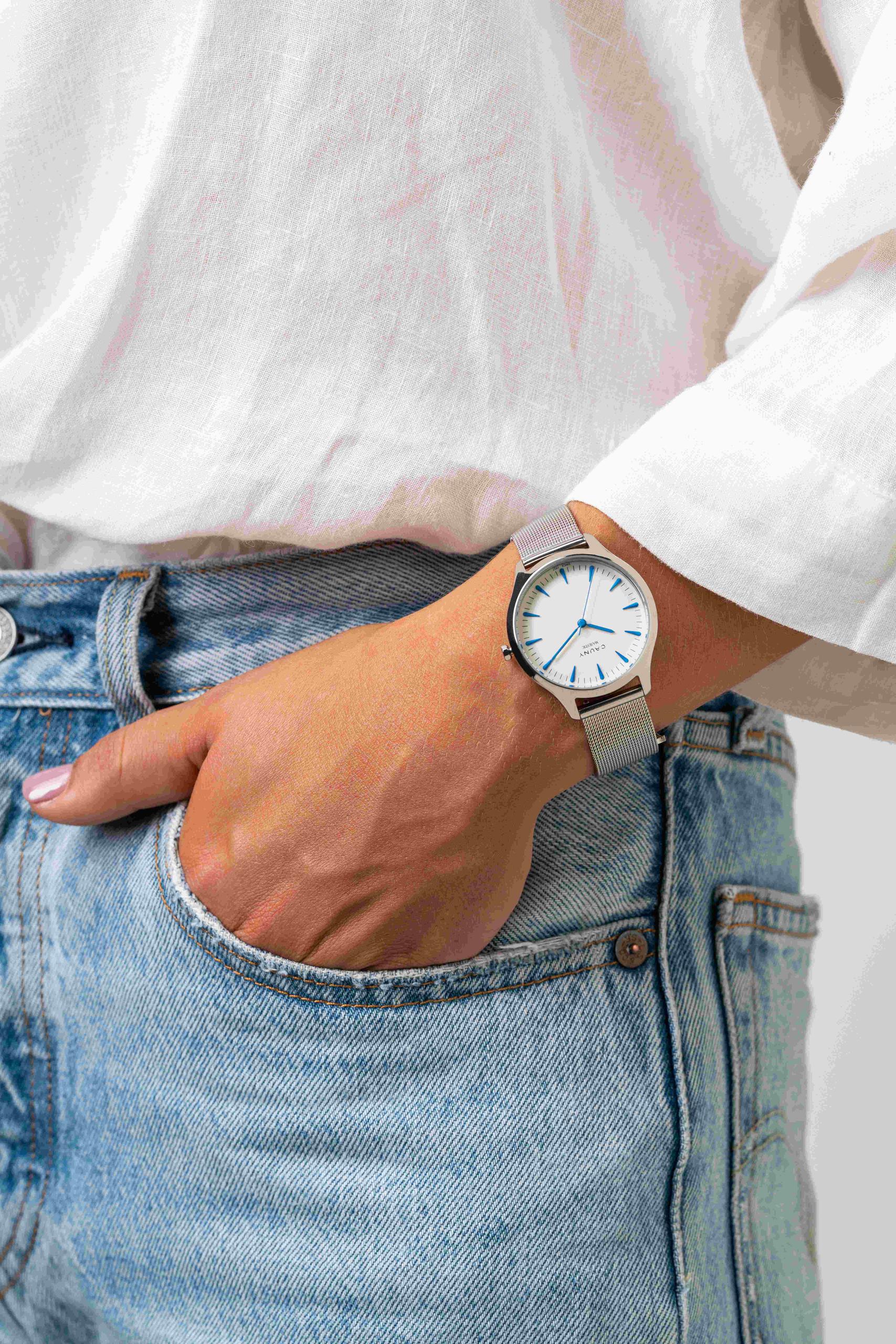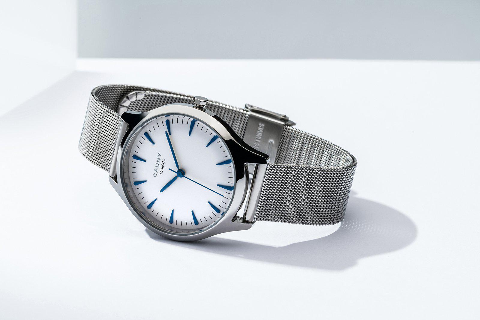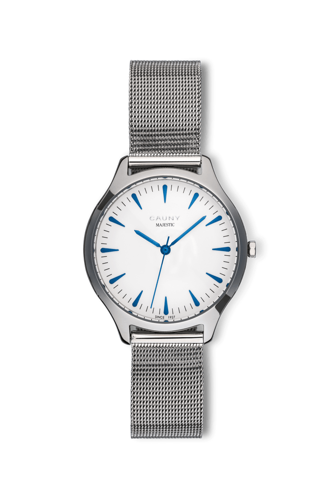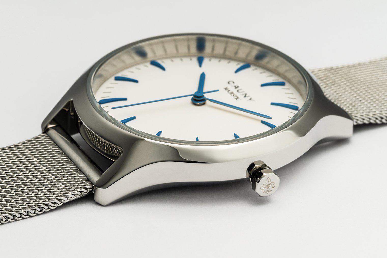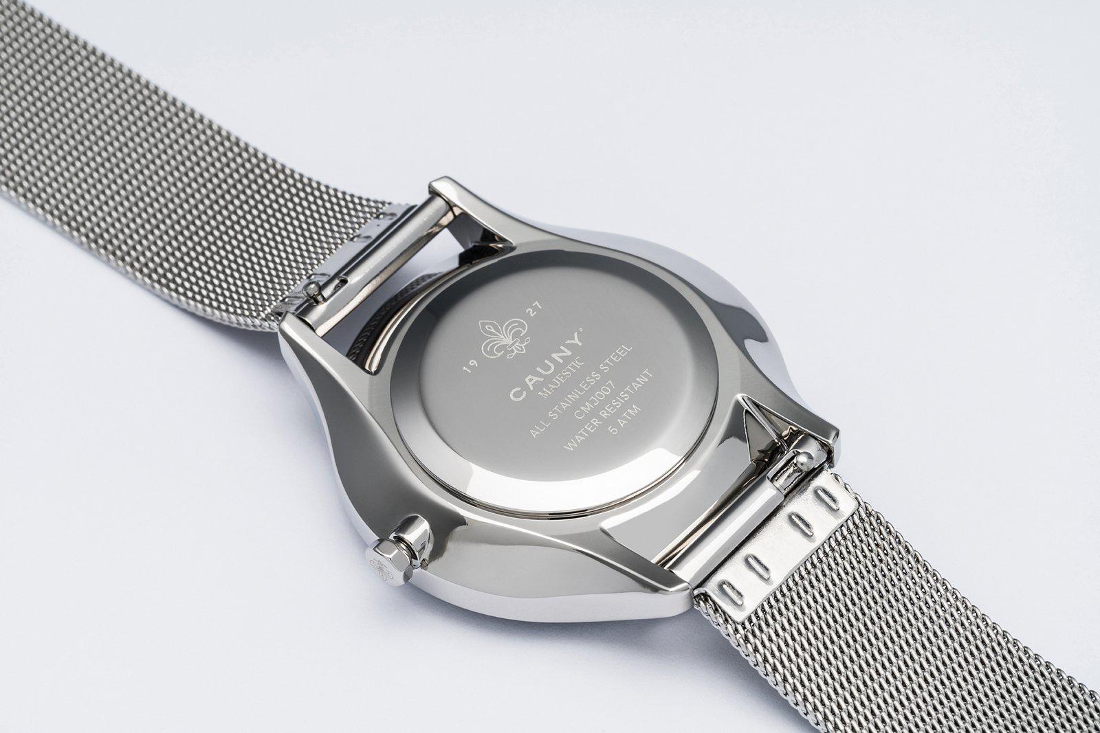Relógio Cauny de senhora em aço inoxidável com bracelete mesh intercambiável.